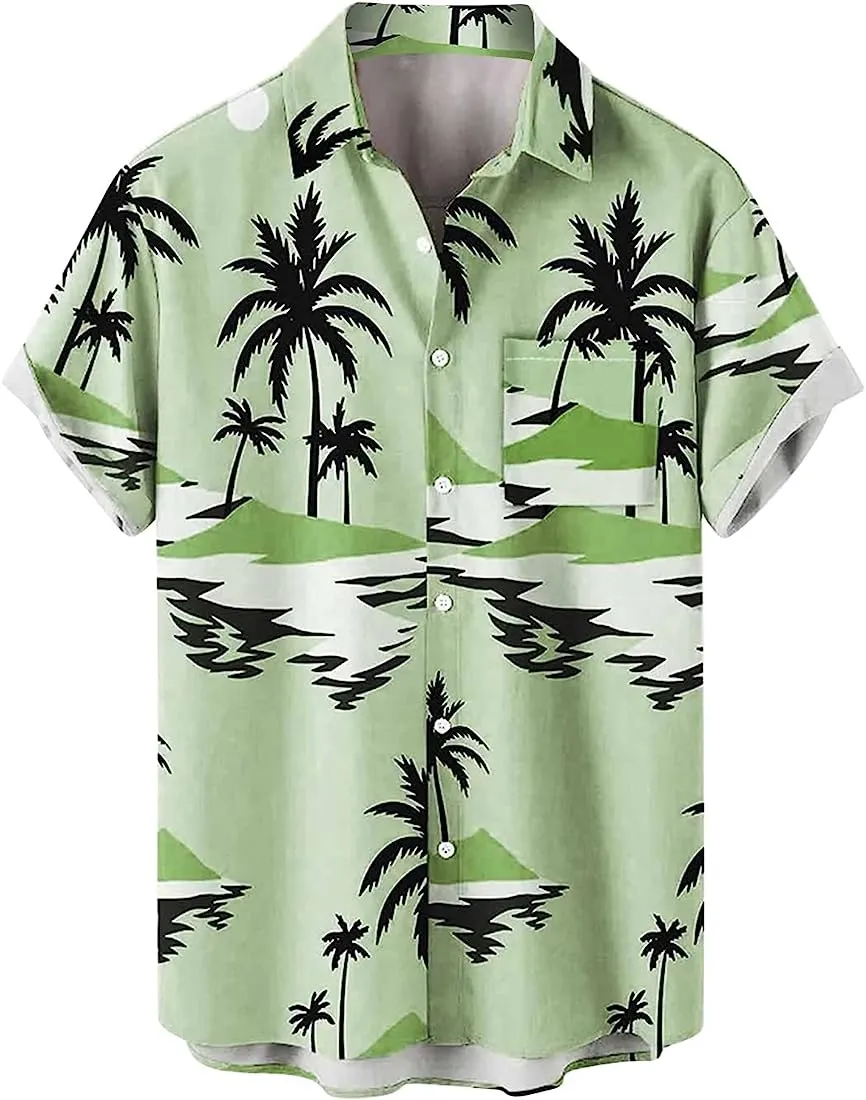 2023 Hot Sale New Arrival Summer Men Hawaiian Casual Knitted Breathable Eco-Friendly Short Sleeves Heat-Transfer Printed 100%