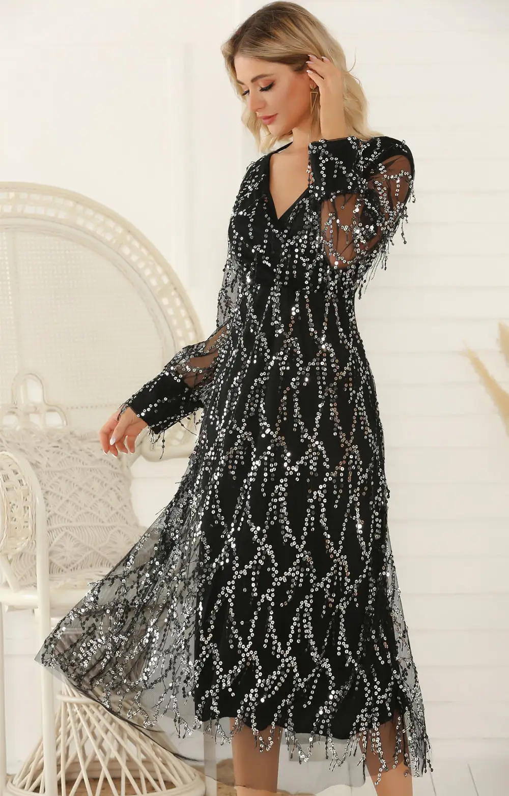 2024 New Hot Sale Women's Spring and Summer New Long Sleeve V-Neck Party Dress Evening Dress Women's Long Dress