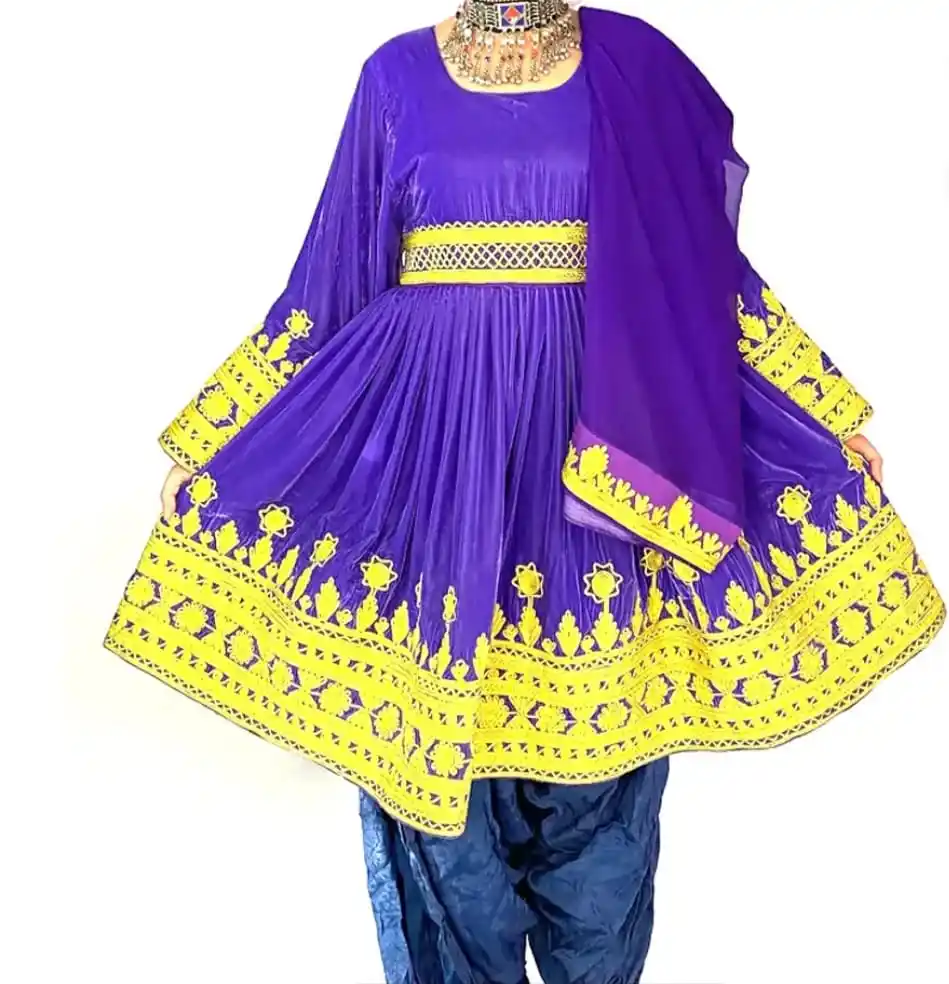2025 Plus Size Women's Traditional Afghan Dress Customizable Colors Silk Salwar Kameez-All Sizes and Low MOQ