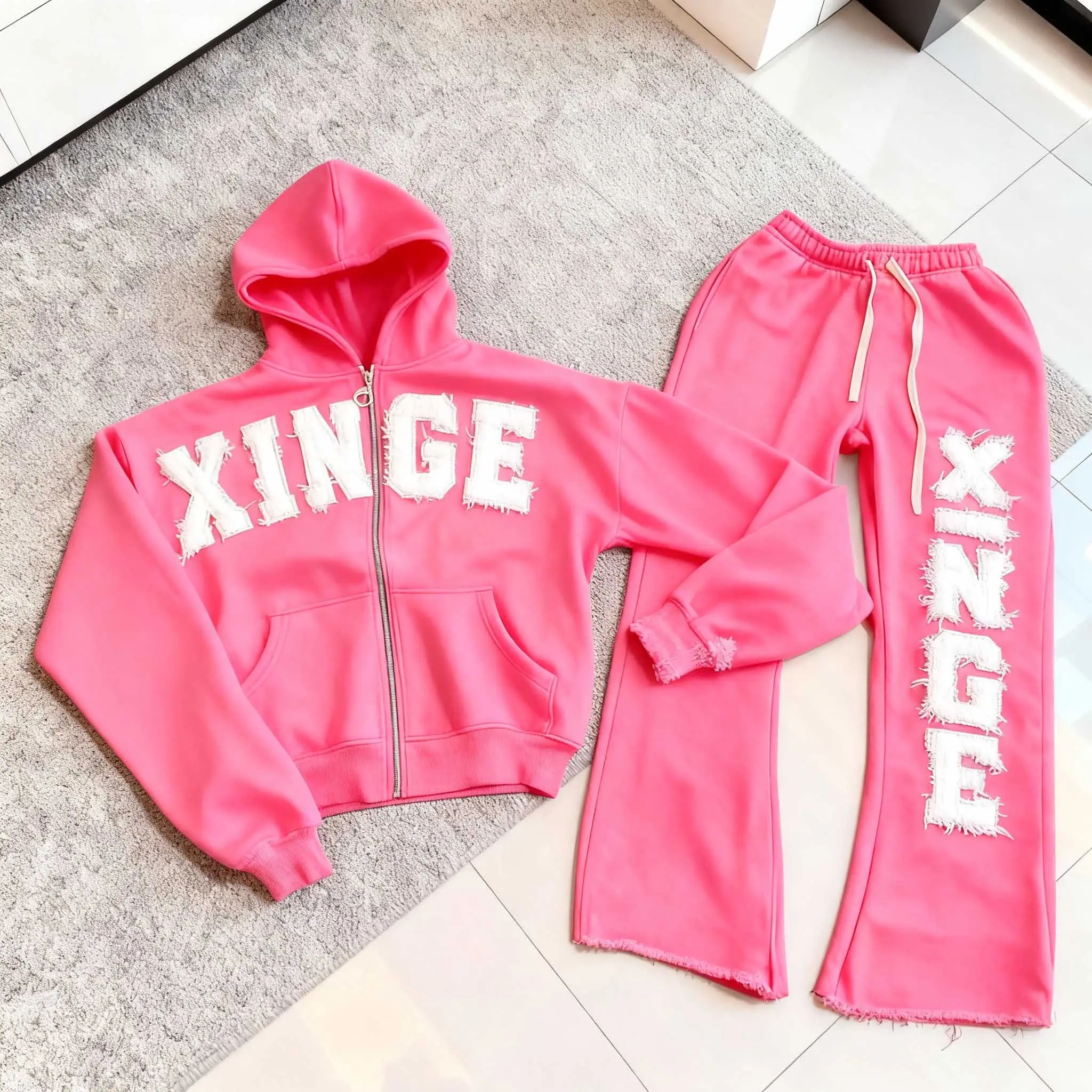 2026 Spring New Design High Quality Full Zipper Track Suit Custom Embroidered Patch Casual Oversized Streetwear Tracksuit Set