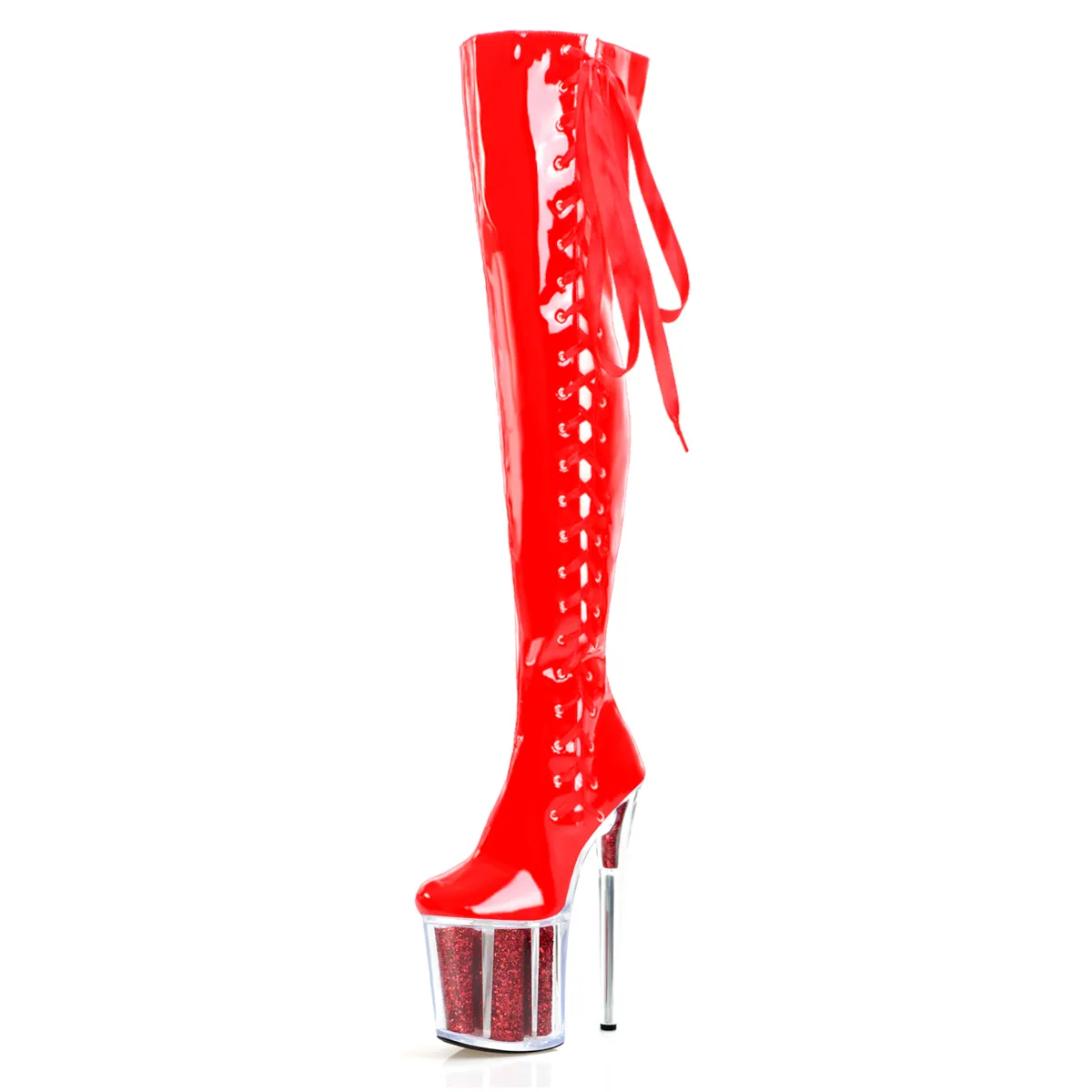 20cm Fashion Platform Belt Buckle 8Inch Exotic Dancer Over the Knee Boots Women's Round Toe Gladiator Nightclub Pole Dance Show