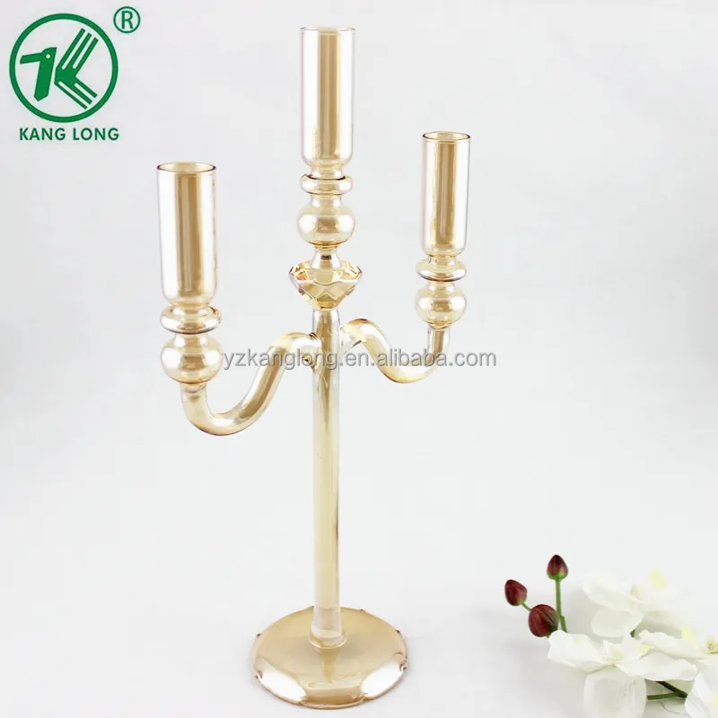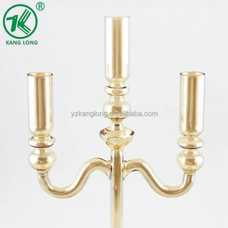 3 Arms Special Design Wedding Gold Plating Crystal Glass Candelabras for Table/home Decorations