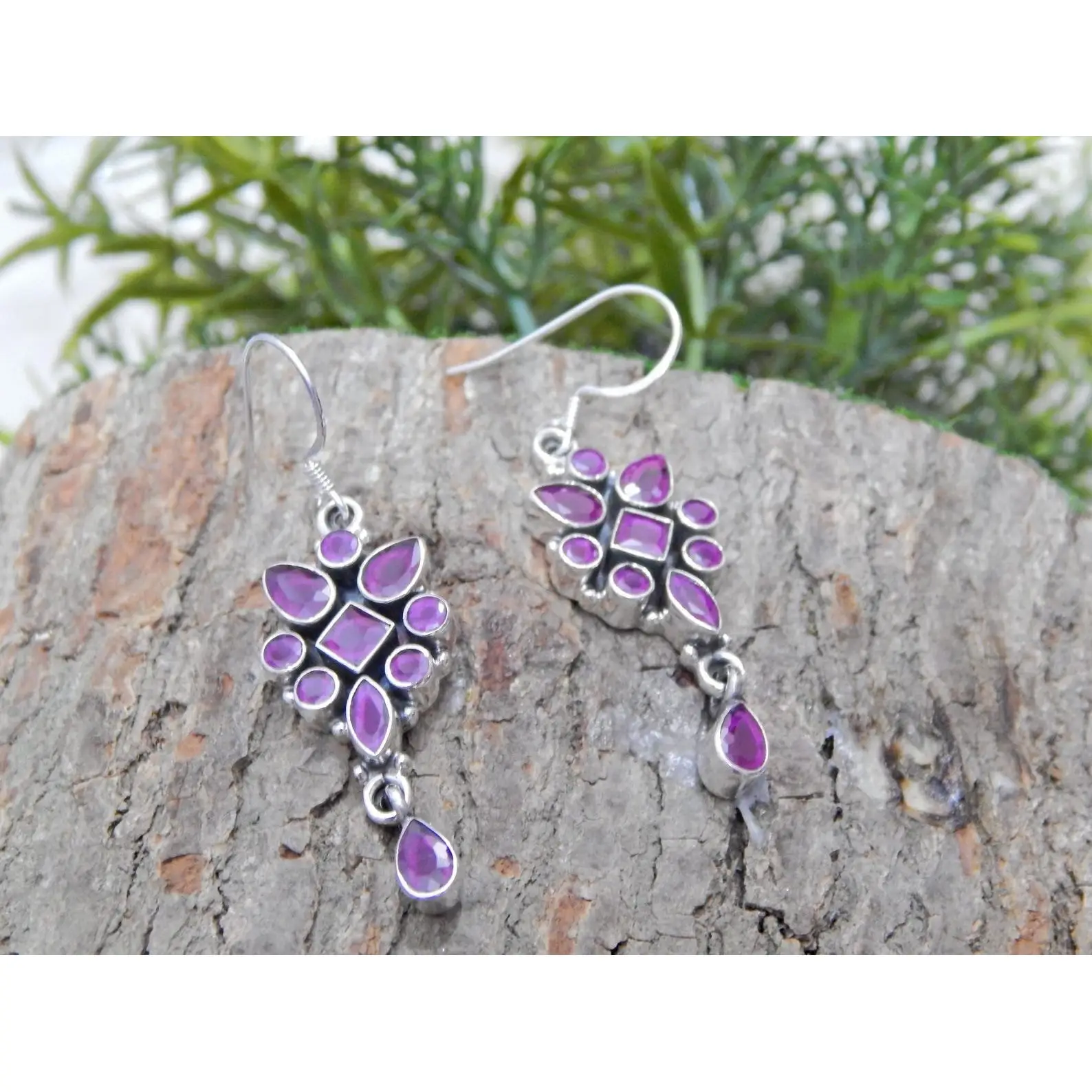 925 Sterling Silver Minimalist Wedding Jewelry Elegant Natural Ruby Flower Earrings and Ring Watches Gift for Her