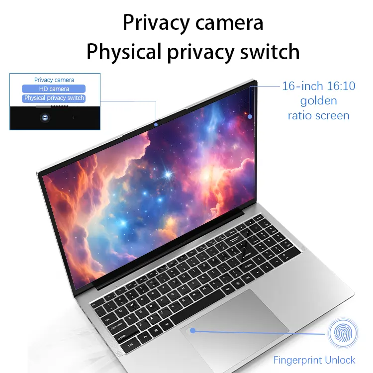 A 16inch Laptop with a Resolution of 1920x1080 Intel N95 Processor English Keyboard and 32GB DDR4 Memory Laptop for Business Use