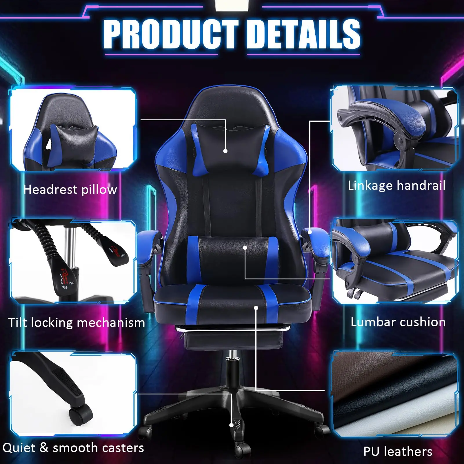 ALINUNU Wholesale Price Ergonomic Gaming Chair Height Adjustable Gamer Chairs with Footrest for Adults