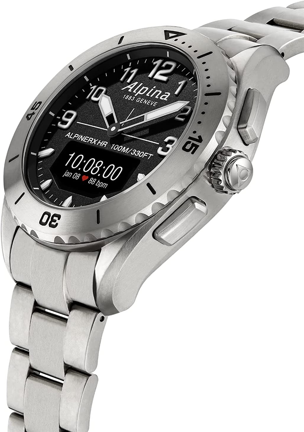 Alpina 男士模擬數字瑞士石英手錶,鈦金屬錶帶銀色
