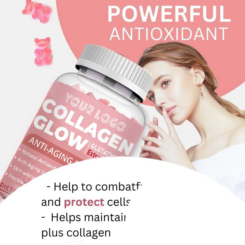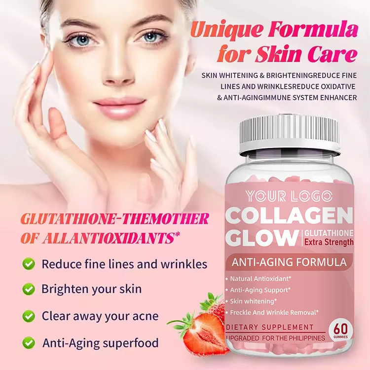 Anti-Aging Supplement Glutathione Collagen Glow Gummies Strawberry Flavor with Collagen Peptides Unique Formula for Skin Care