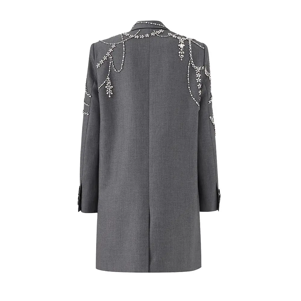 BA2241 European and American High Quality Embroidery Beaded Temperament Short Top Punk Style Thin Long Sleeve Winter Coat