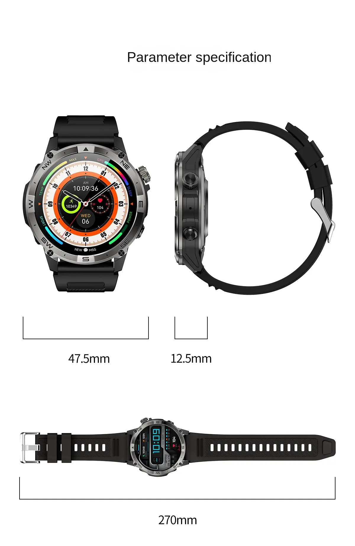 AGM Watch W1 Pro GPS Offline Map 5ATM IP68 Waterproof 100+ Sports Modes Golf Swimming Relojes Men Smart Watch 2025