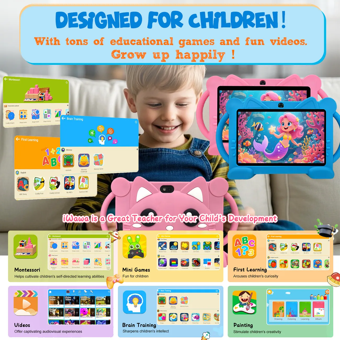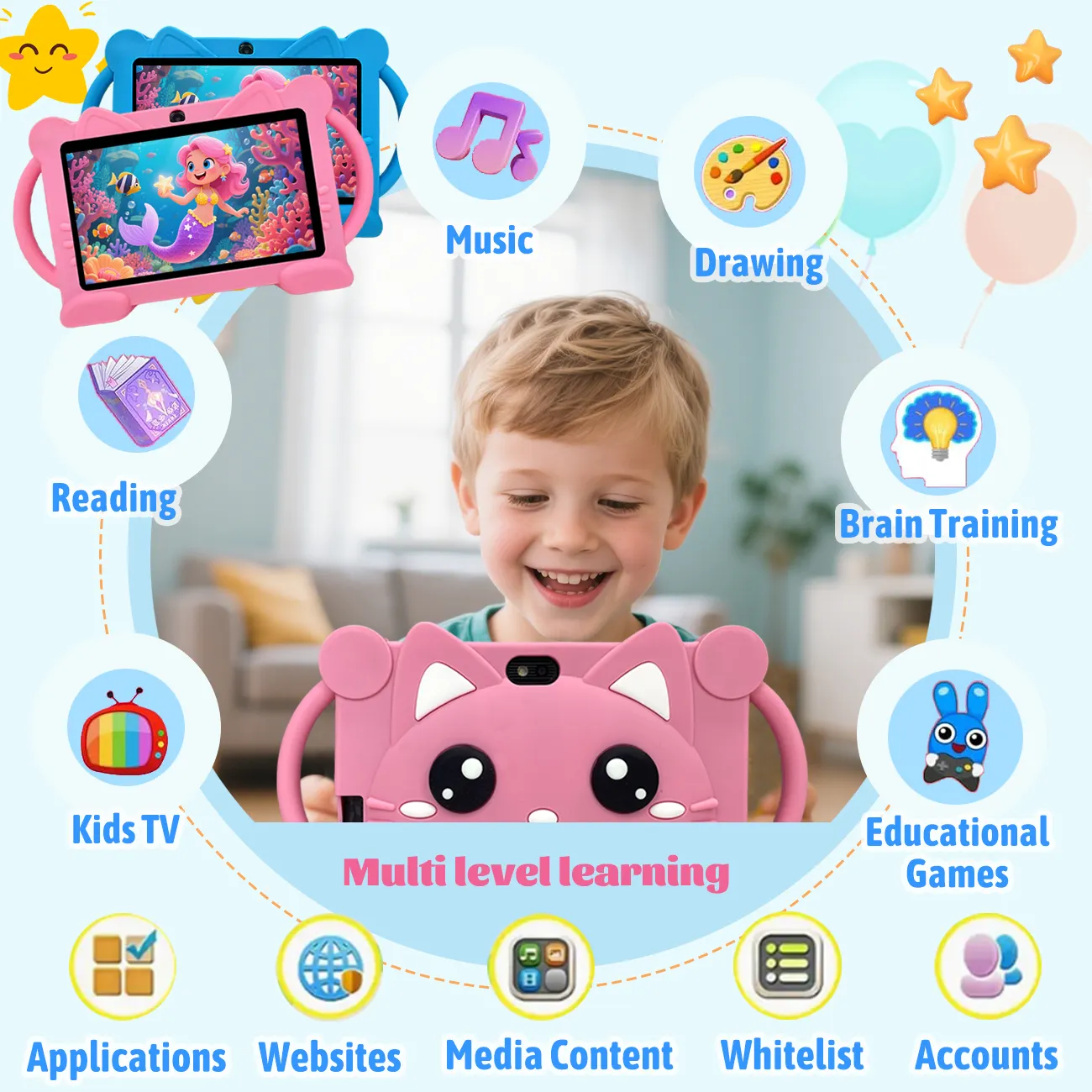 Best-Selling 7-Inch Kids Tablet PC with HD IPS Quad Core 2GB Memory and Bright Colors Perfect Christmas Black Friday Gift