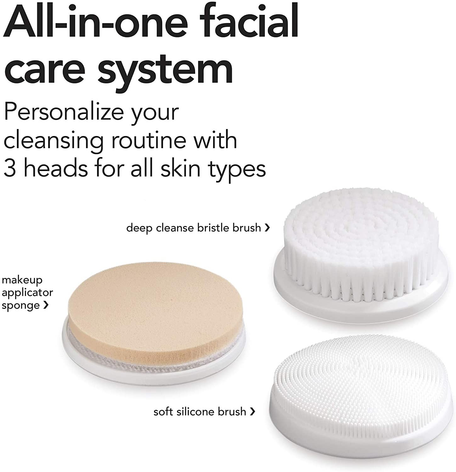 Brightline 聲波可充電電動潔面刷系統,面部去角質儀,6 種強度設置,3 個磨砂刷頭