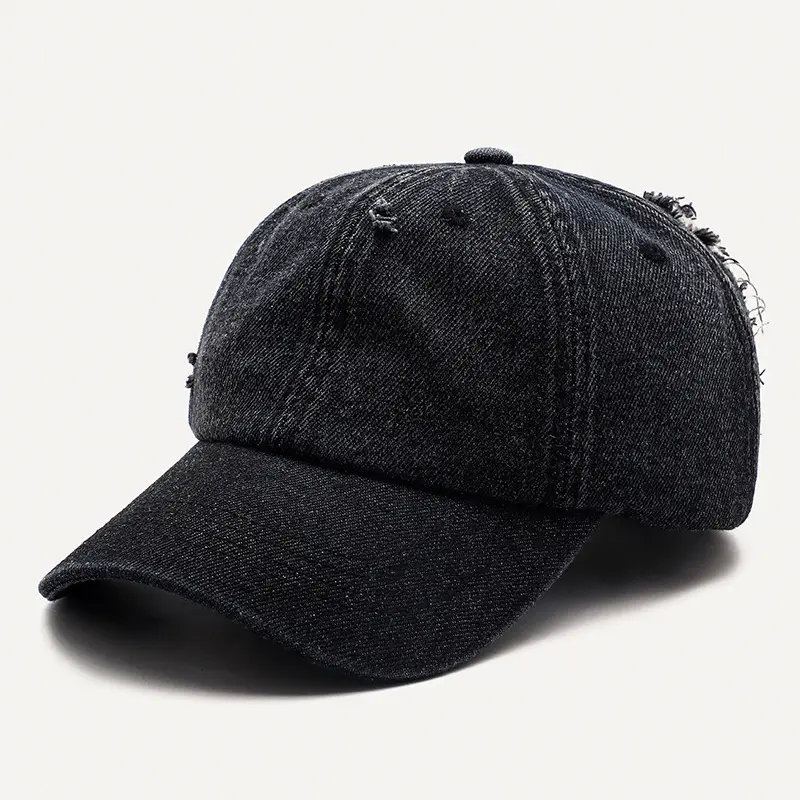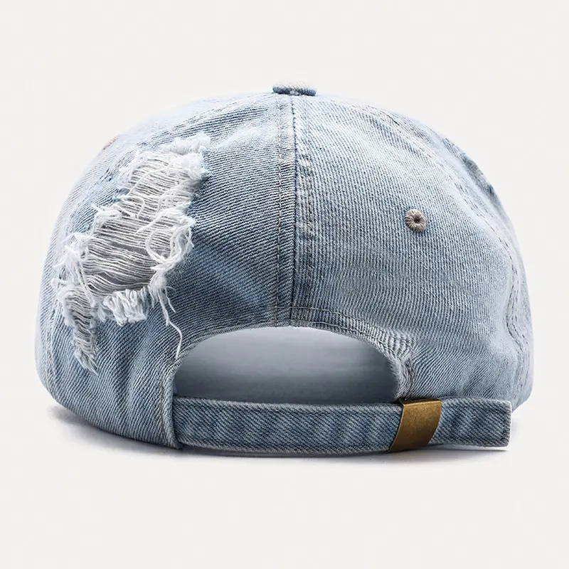 Cheap Custom Mens Women Plain Blue Jeans Vintage Washed Denim Fabric Distressed Strap Back Baseball Caps and Dad Hats