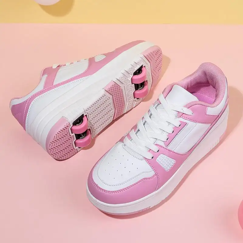 Children's Sporty Shoes Spring Breathable Comfortable Four-Wheel PU Upper Mesh Lining Sport Sneakers & Roller Skate Shoes