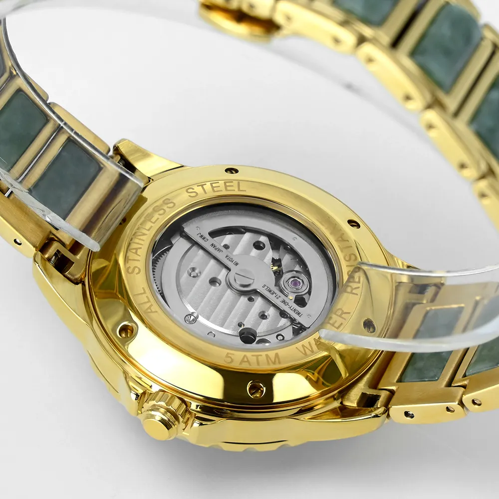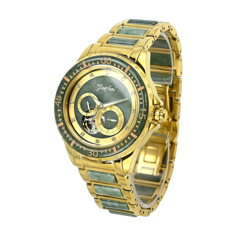 China Manufacturer Natural Jade Watches Hollow Out Skeleton Luxury Gold Mechanical Automatic Watch for Men Oem ODM
