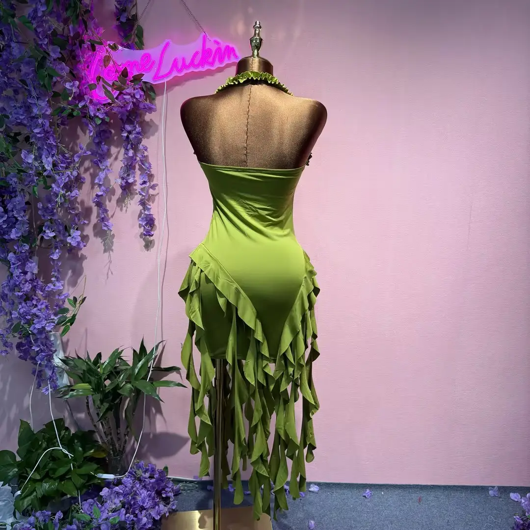Comeluckin Women's Casual Summer Mini Dress Irregular Tassel Hem Halter Backless Sexy Solid Split Midnight Club Knitting Natural