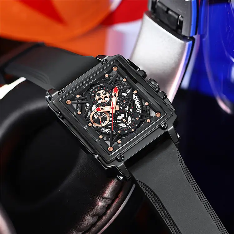CRRJU 2312 Hollow Out Design Men Watch Business Personality Male Fashion Waterproof Square Quartz Wristwatch