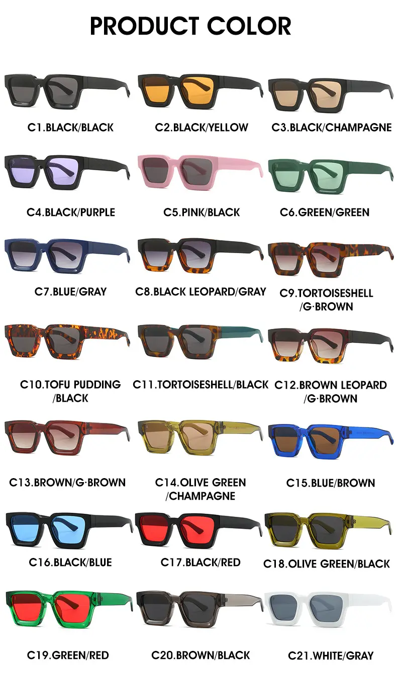 Custom Brand Logo Designer Sun Glasses Fashion Gafas De Sol Shades Black Chunky Vintage Square Sunglasses