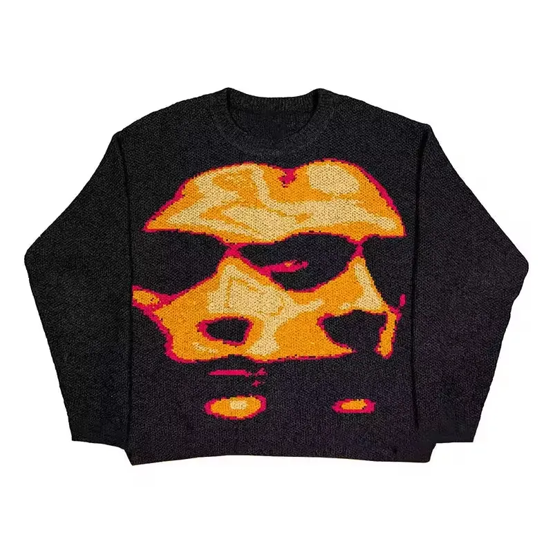Custom Design Pattern logo Jacquard Print Oversized Pullover Sweater Y2k Knitted Streetwear Men Fashion Cotton Sweater