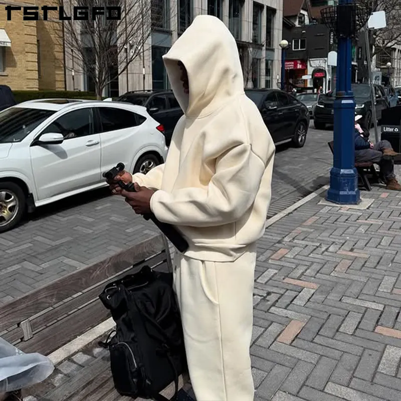 Custom logo 100% 450 Gsm Cotton Oversized Men's Baggy Plain Cropped Heavy Zip up Hoodie and Loose Fit Sweatpants Tracksuit Set