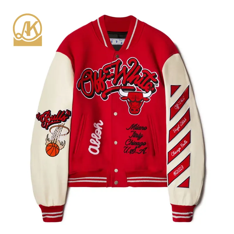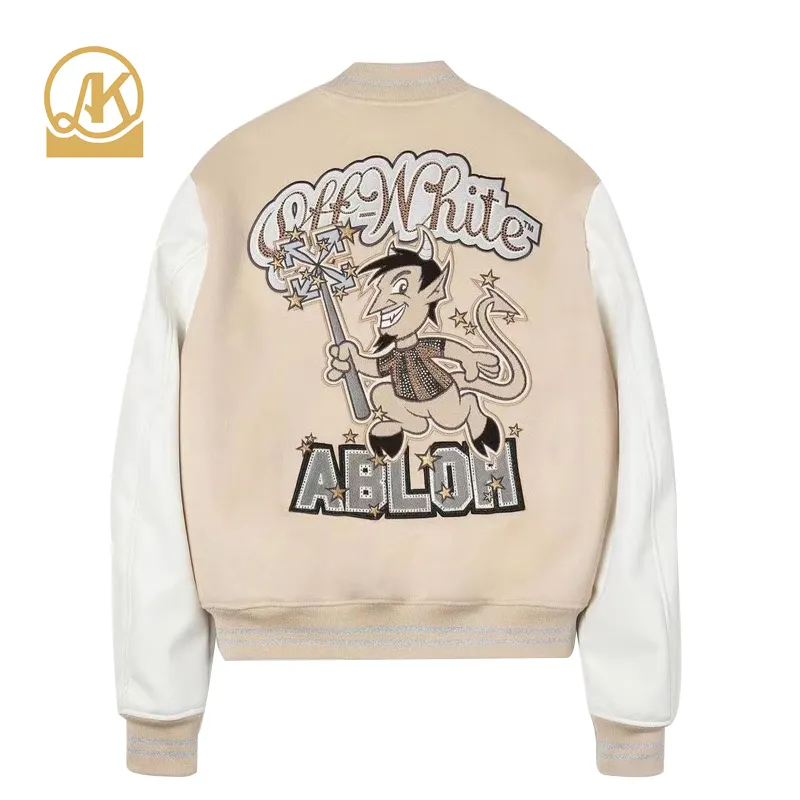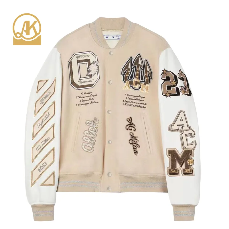 Custom Logo Patches Bomber Jacket Letternan Vintage Casual Hip Hop Bomber Leather Sleeve Varsity Jacket