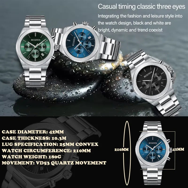 Custom logo Watch Fashion Designs Oem logo Sport Stainless Steel Chronograph Watches for Men Luxury Wholesale Watch Manufacturer