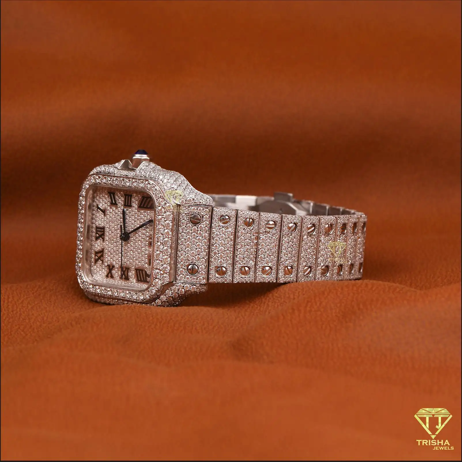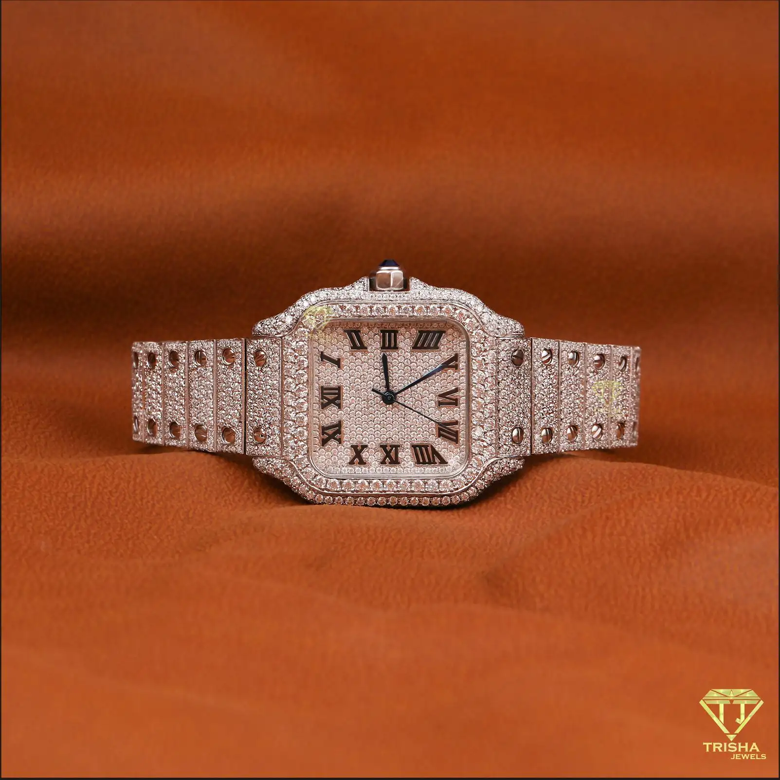 Custom Luxury Mechanical Watch Hip Hop Style Full Iced Square Moissanite Diamond Classic Date Dial Black Roman Stainless Steel