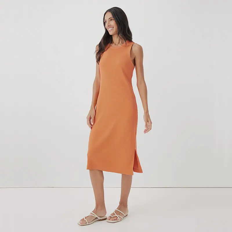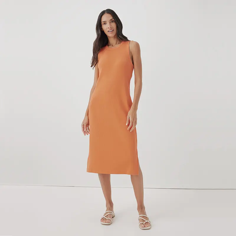 Custom Made Women's Crewneck Sleeveless Bamboo Tank Bodycon Ribbed Knit Side Sit Knee Length Pencil Bamboo Viscose Midi Dresses