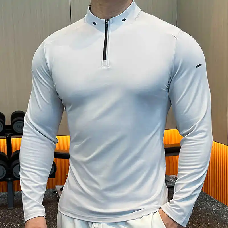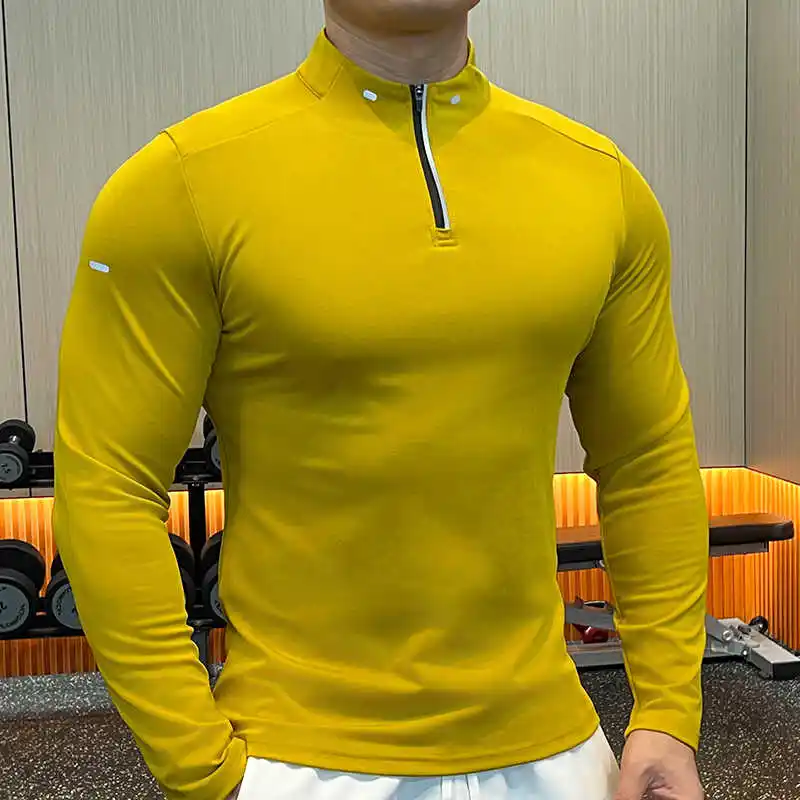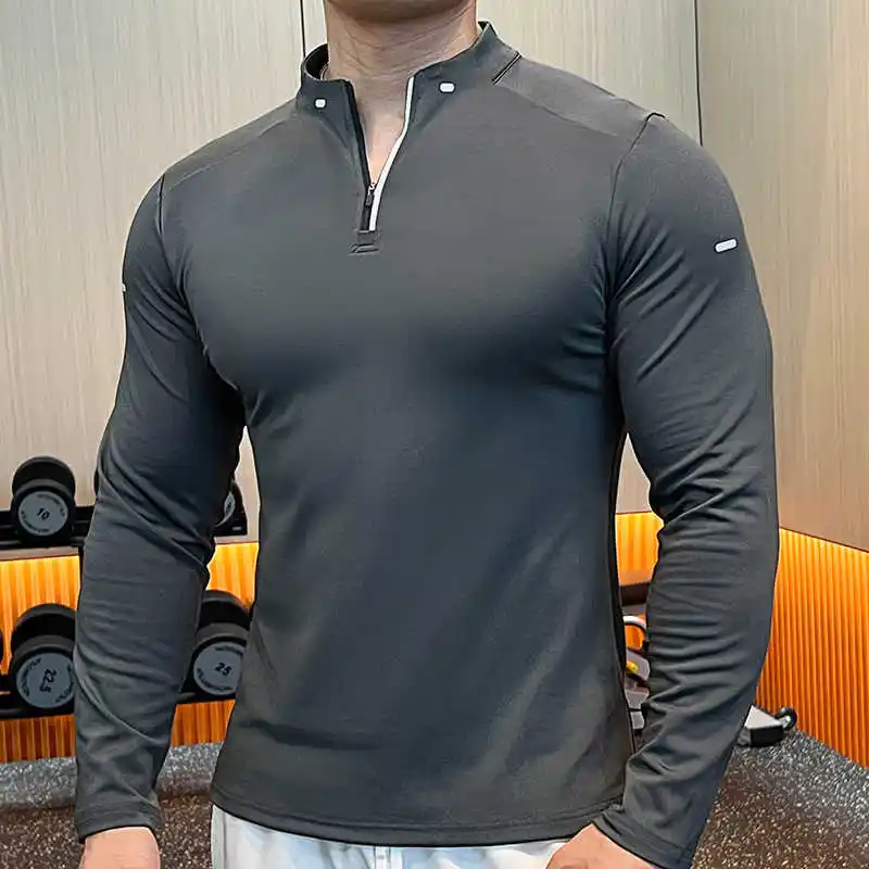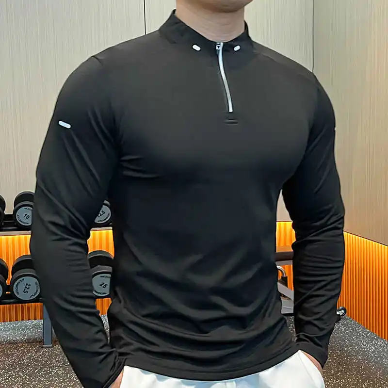 Custom Quick Dry Men's Gym T-Shirt 1/4 Quarter Zip Pullover Long Sleeves Jogging Sportswear Golf Shirts