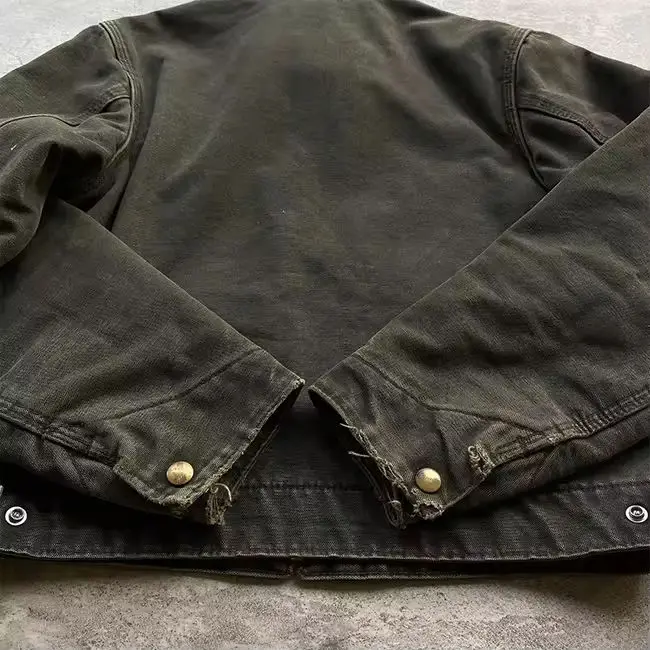 Custom Streetwear Fashion Vintage Washed Plus Size Canvas Jacket Zip up Heavy Canvas Work Jacket Men
