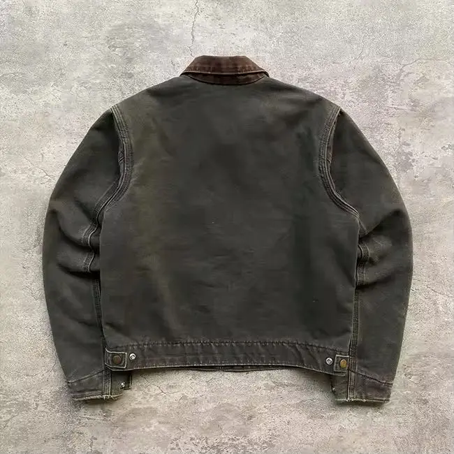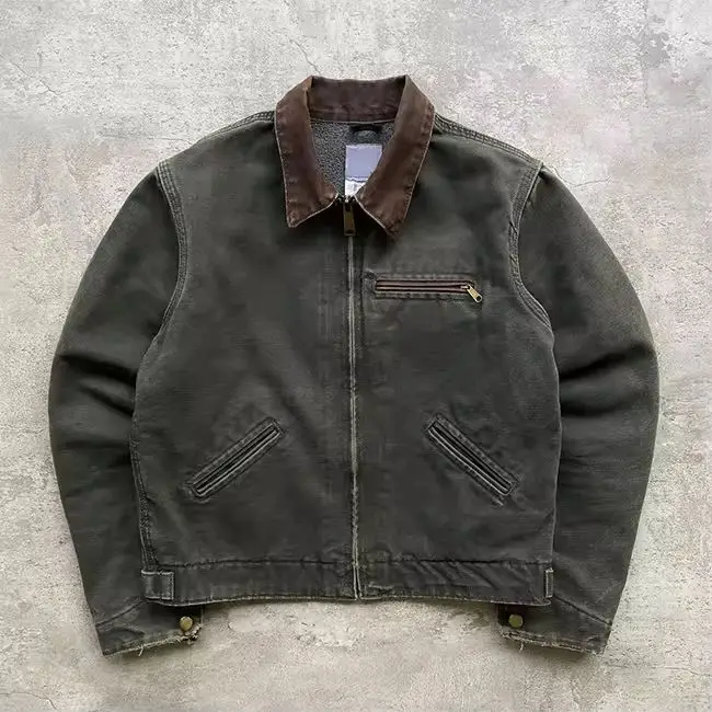 Custom Streetwear Fashion Vintage Washed Plus Size Canvas Jacket Zip up Heavy Canvas Work Jacket Men