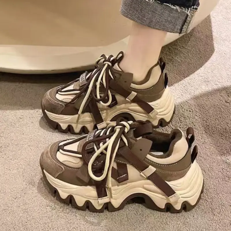 Custom Women's Casual Chunky Sole Sneakers Breathable Lace-up Thick Soled Platform Walking Sport Shoes