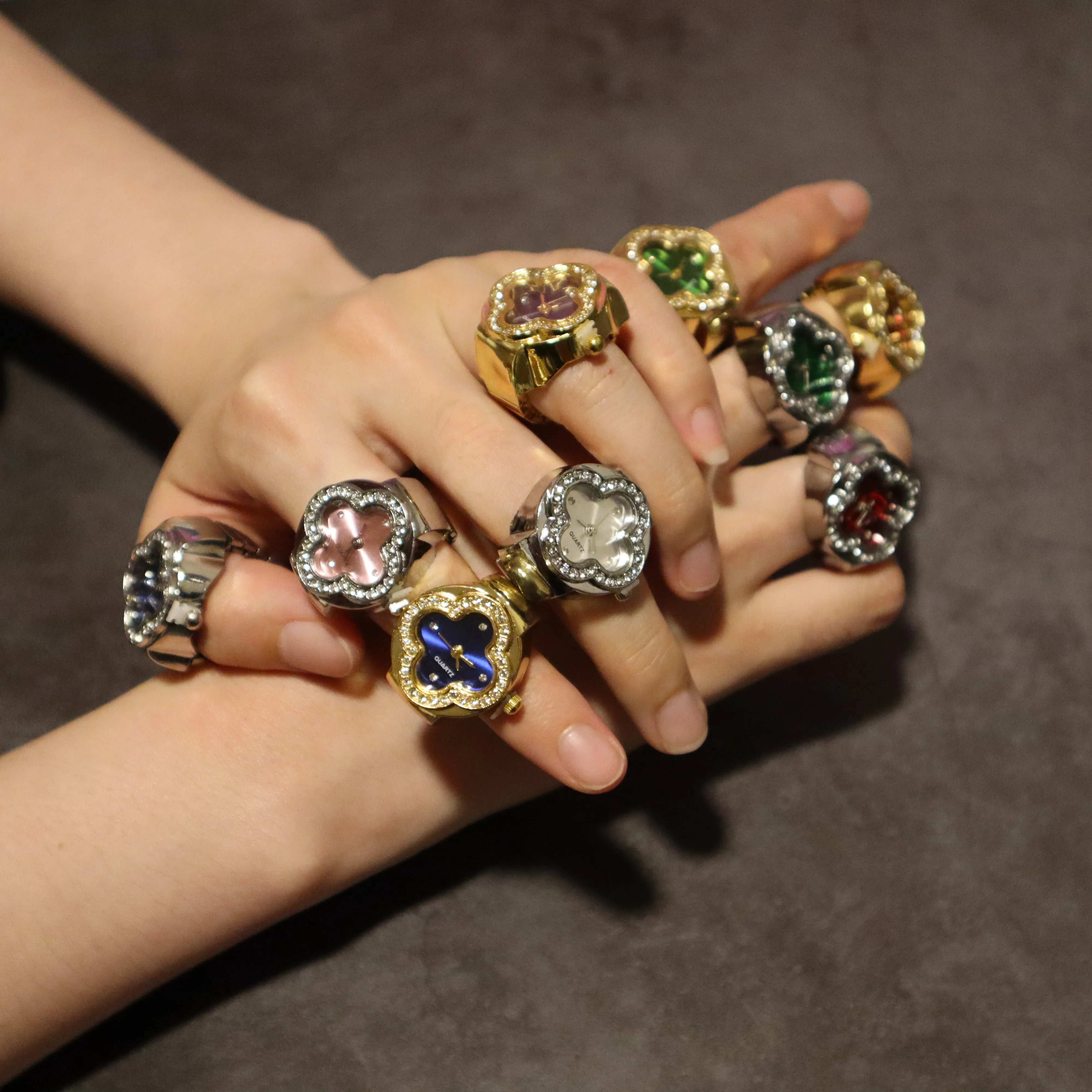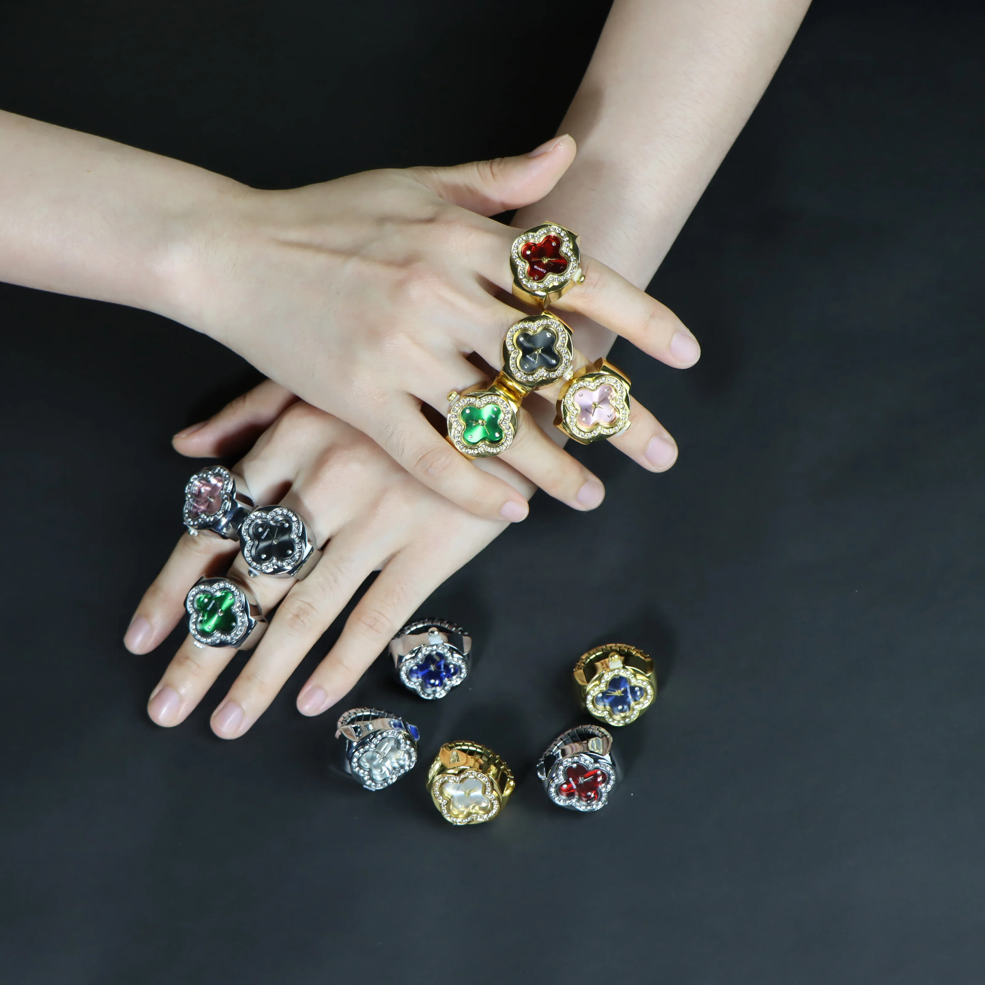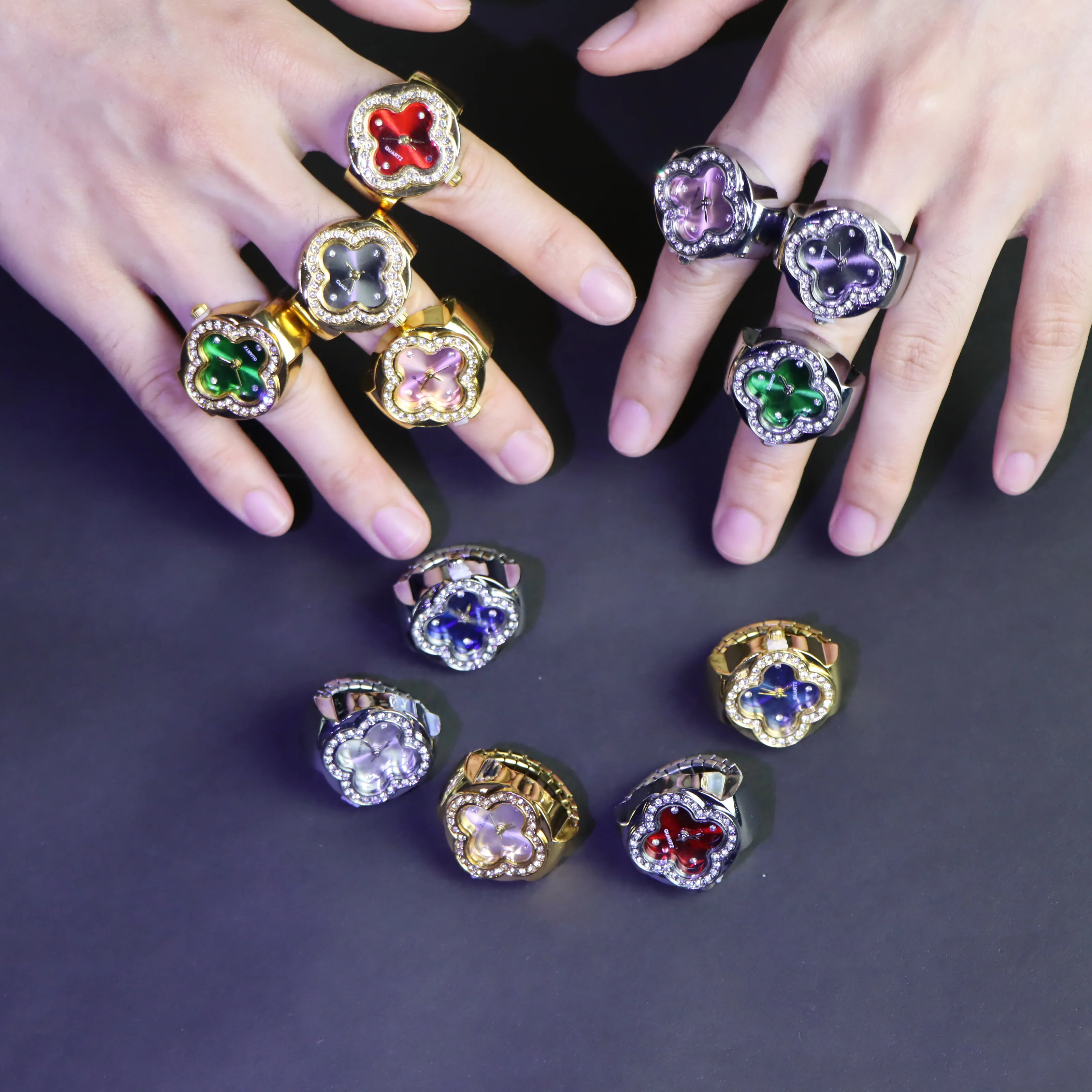Customizable Fashion Gift Minimalist Y2K Flower Shaped Digital Watch Ring Quartz Finger Watch Rings for Women