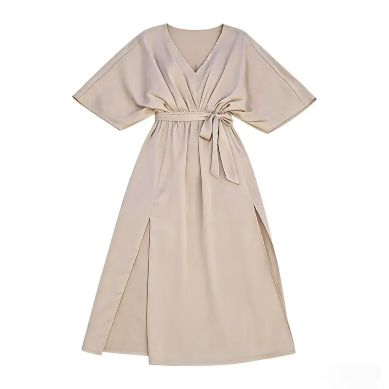 Customizable Women's Dresses Elegant Solid Color Satin Waistband Breathable Maxi Dress Vintage Summer Leisure OEM Service