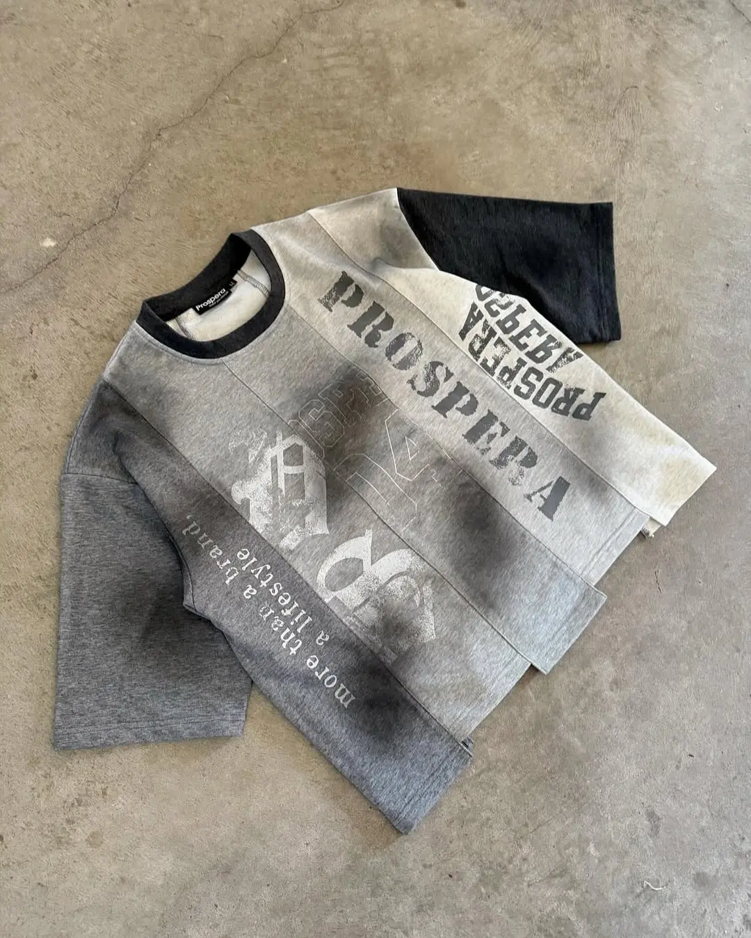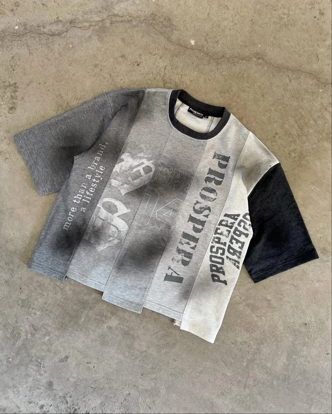 Customized 100% Cotton Smart Casual Knitted T-shirt Street Multi-Panel Square Color Block Sun Fading Retro Uneven DTG Printed