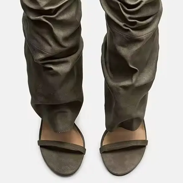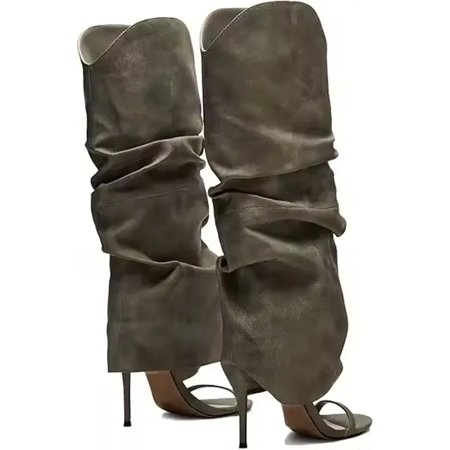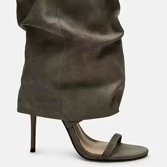 Customized Logo Green Elegant Women's Round Toe Stiletto Heels Knee High Boots Shoes