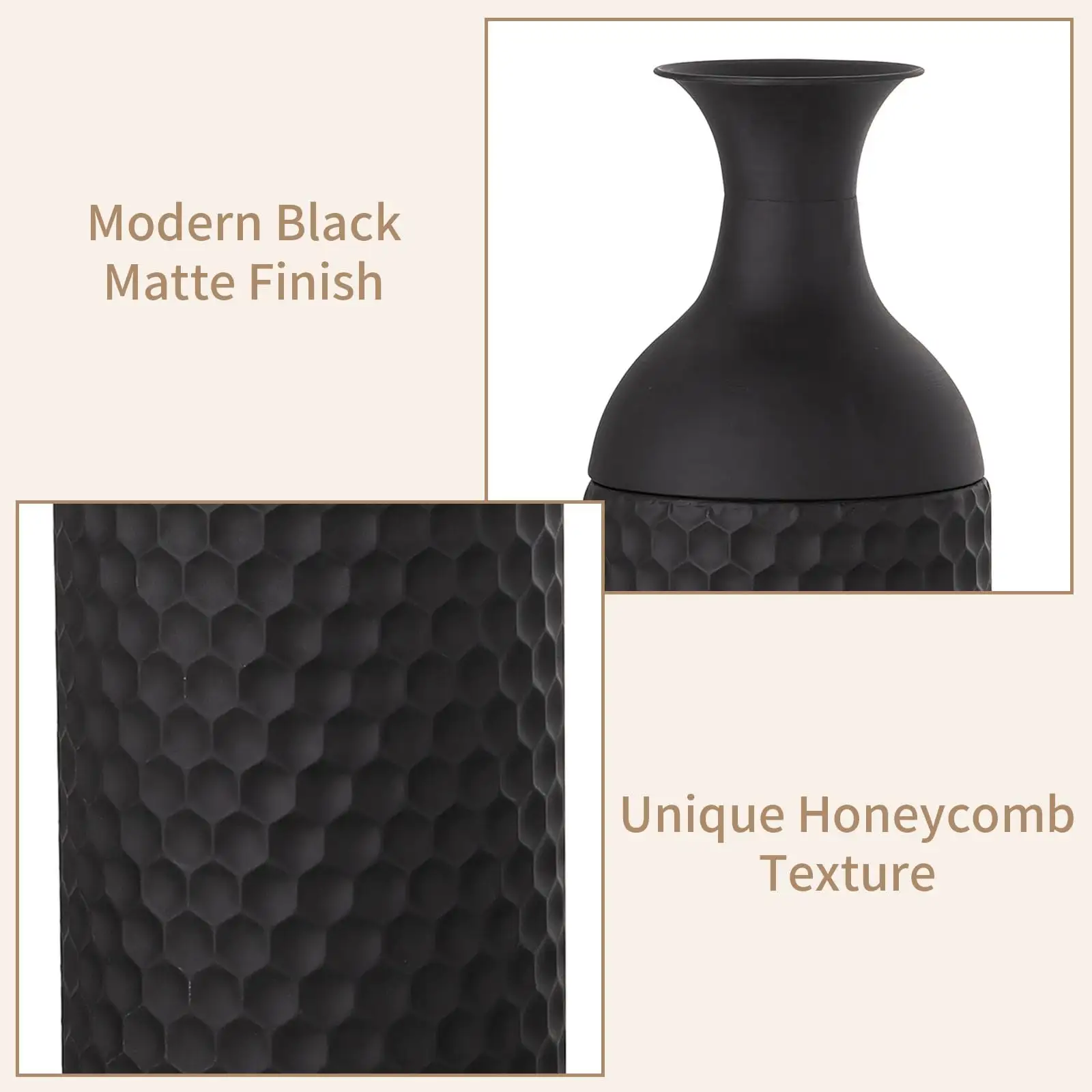 Decorwell Set of 3 Decorative Rustic Large Iron Flower Vase Big Tall Black Vases for Living Room