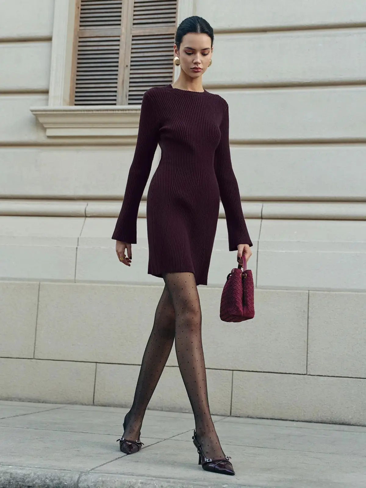Ladies Long Sleeve Pullover Sexy Dress Back Hollow Out Custom Women Brown Cut Out Back Mini Sweater Dress