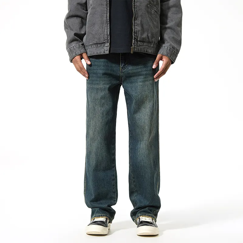 Baggy Jeans Men's Casual Wide Leg Three-Dimensional Machete Washed Straight Jeans Men Cotton Mid Denim Baggy Jeans for Men