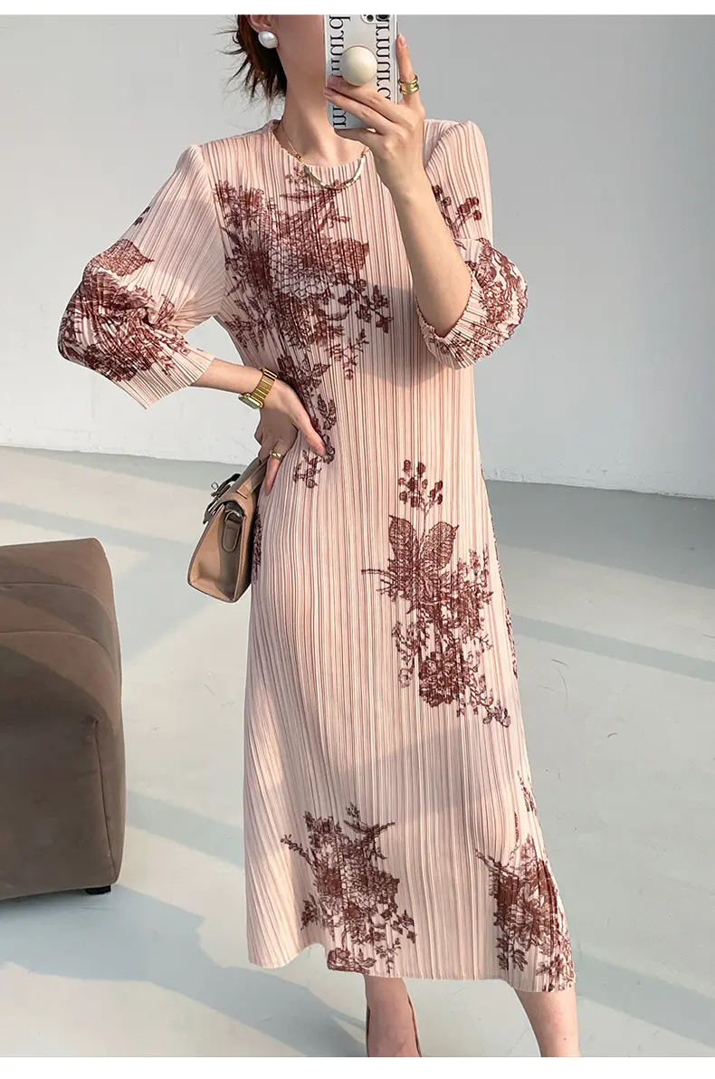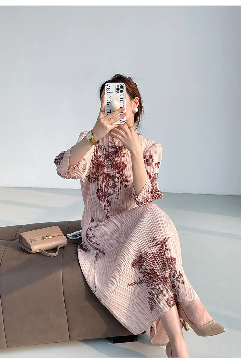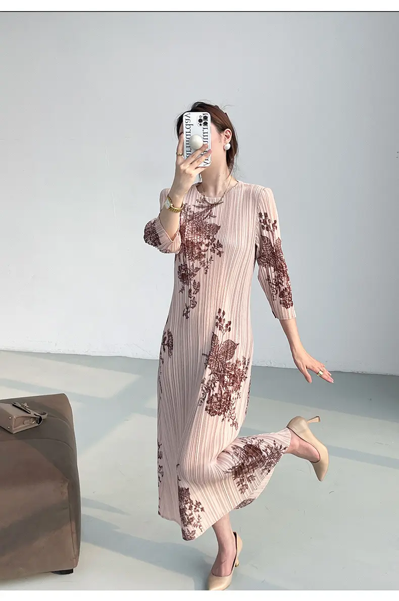 Factory Elegant Casual Women's Maxi Dress Regular Fit Digital Printing Pleated Decoration Natural Waist A-Line Dress