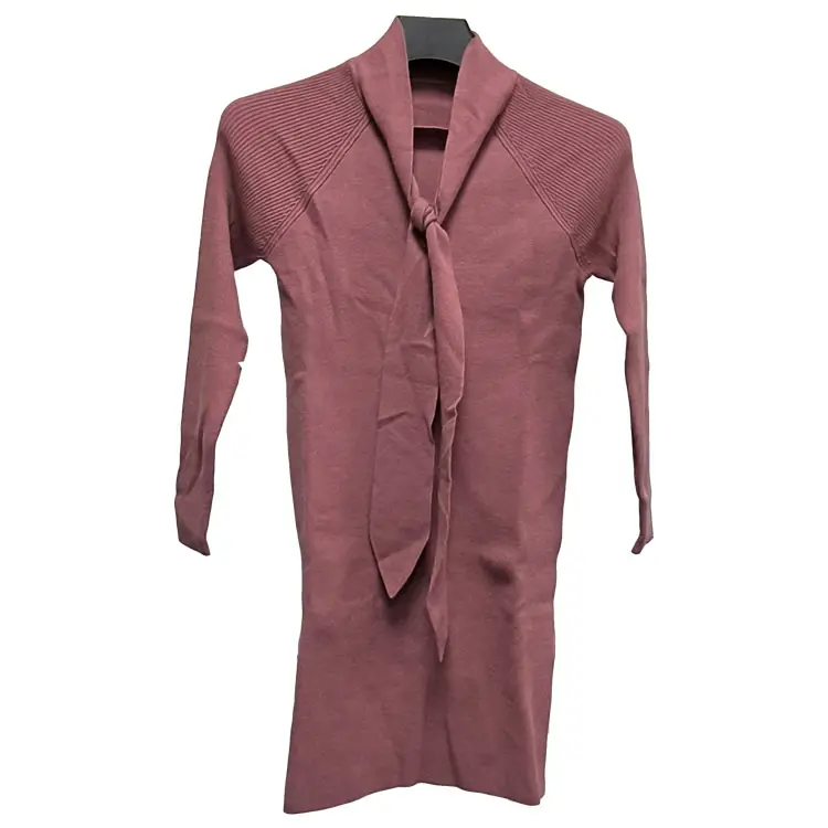Low Moq Custom Women Knit Sweater Long Sleeve Crew Neck Ladies Dress Plus Size Drawstring Belt Women Knit Dress