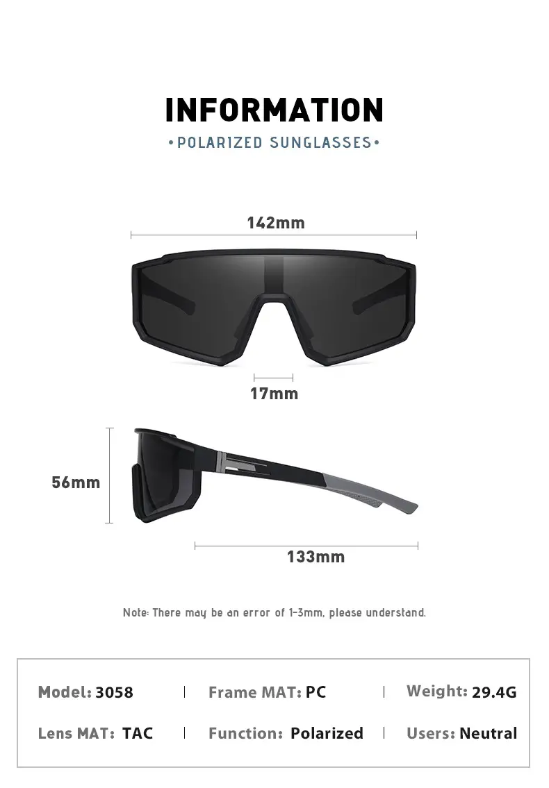 Polarized Fashionable Sports Eyewear Windproof UV400 Large Size Sunglasses for All Outdoor Activities