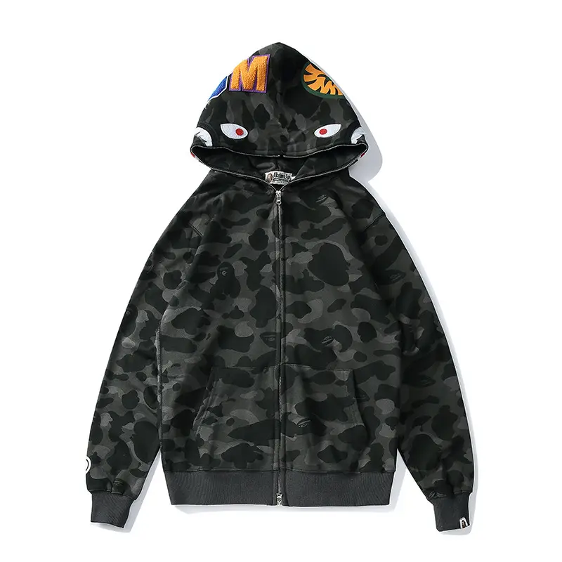 Full Zip up Shark Hoodie Camouflage Cotton Polyester Custom Logo Sweatshirt Supplier Men's Hoodies