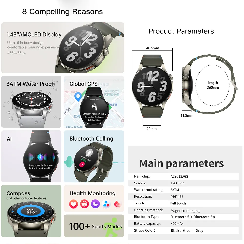 AGM Watch W1 Pro GPS Offline Map 5ATM IP68 Waterproof 100+ Sports Modes Golf Swimming Relojes Men Smart Watch 2025
