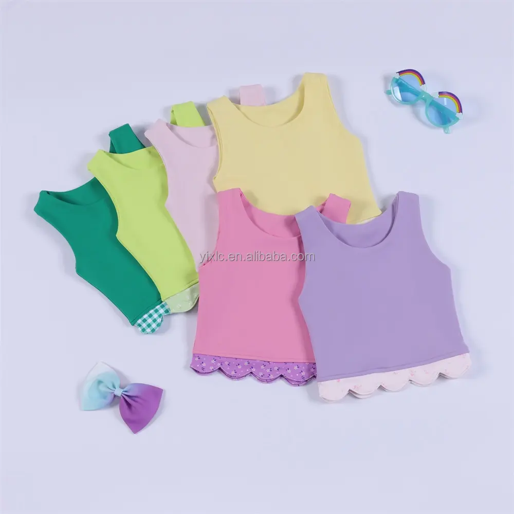 Girls 2 Piece Yoga Sleeveless Tank Skirt Set Bow Decor Built in Shorts Sweet Casual Custom Fast Shipping