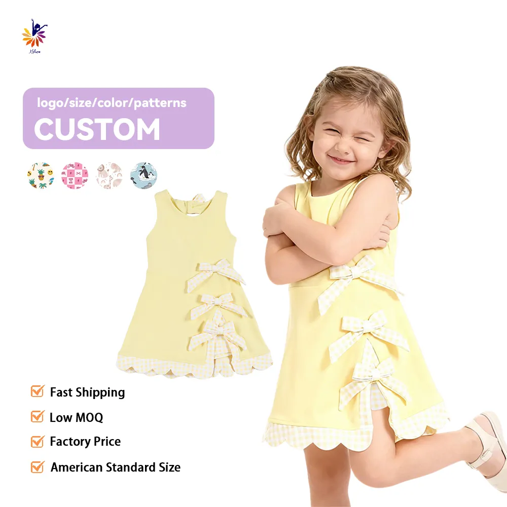 Girls Fitness Dress Sleeveless Fashion with Bow and Built in Shorts Low MOQ Customizable