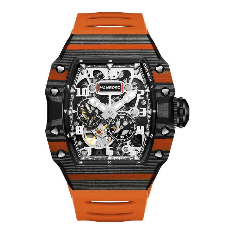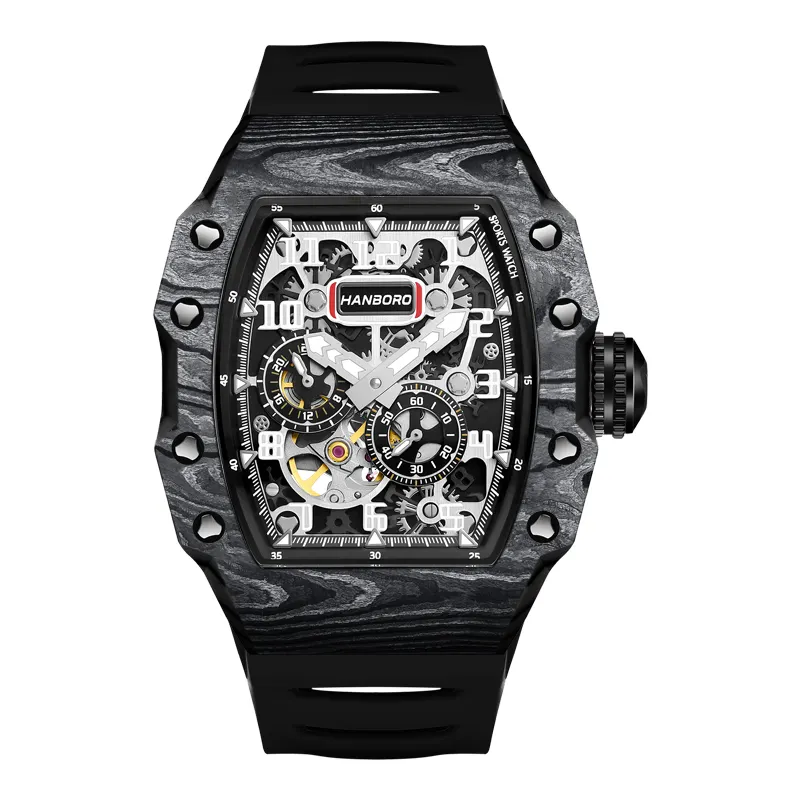 HANBORO Carbon Fiber King Series Luxury Fully Automatic Men's Mechanical Watch Square Silicone Waterproof Pointer Full