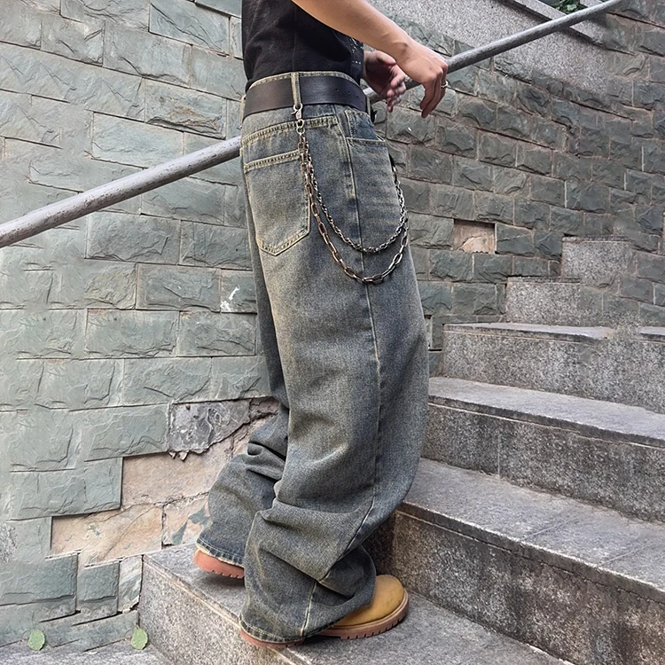 Baggy Jeans Men's Casual Wide Leg Three-Dimensional Machete Washed Straight Jeans Men Cotton Mid Denim Baggy Jeans for Men