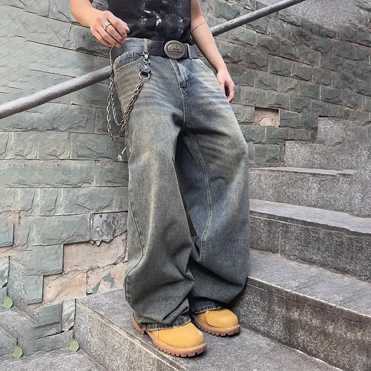 Baggy Jeans Men's Casual Wide Leg Three-Dimensional Machete Washed Straight Jeans Men Cotton Mid Denim Baggy Jeans for Men