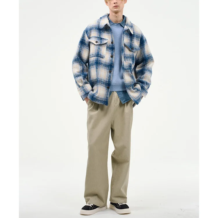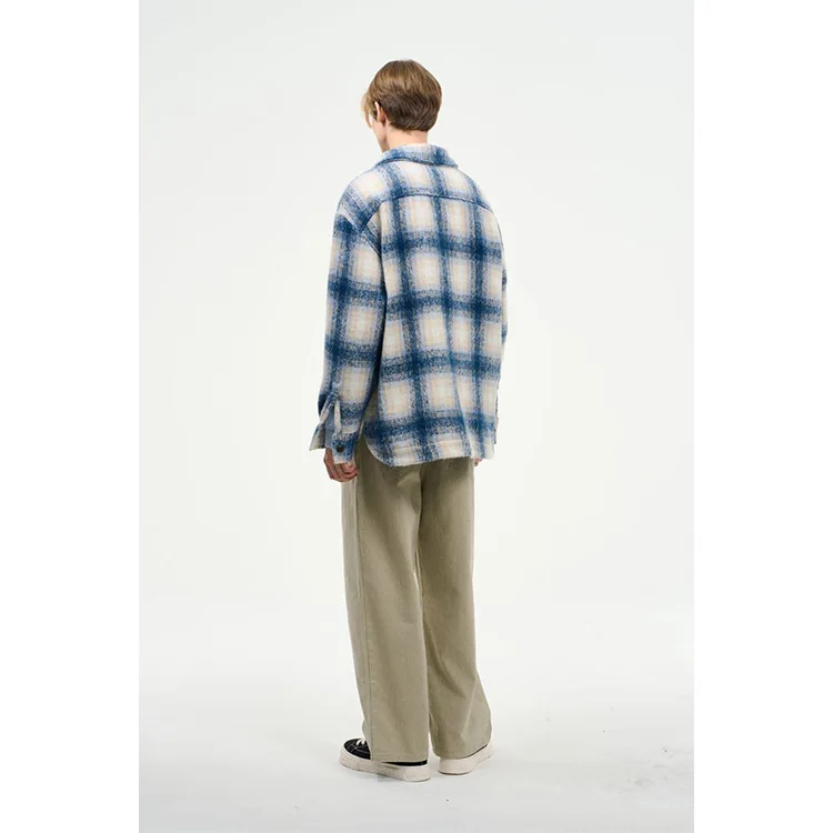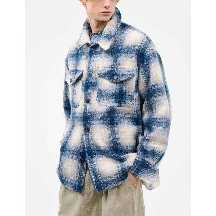 High Quality Fashion Custom Long Sleeve Button up Men Plaid Shirts Check Turn Down Collar Double Front Pocket Men Shirt