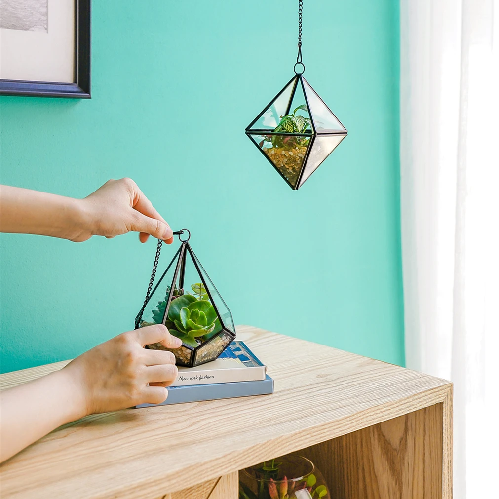 High Quality Home Storage Decorative Geometric Glass Terrarium Bins Art Deco Style Tabletop Vase Ornament